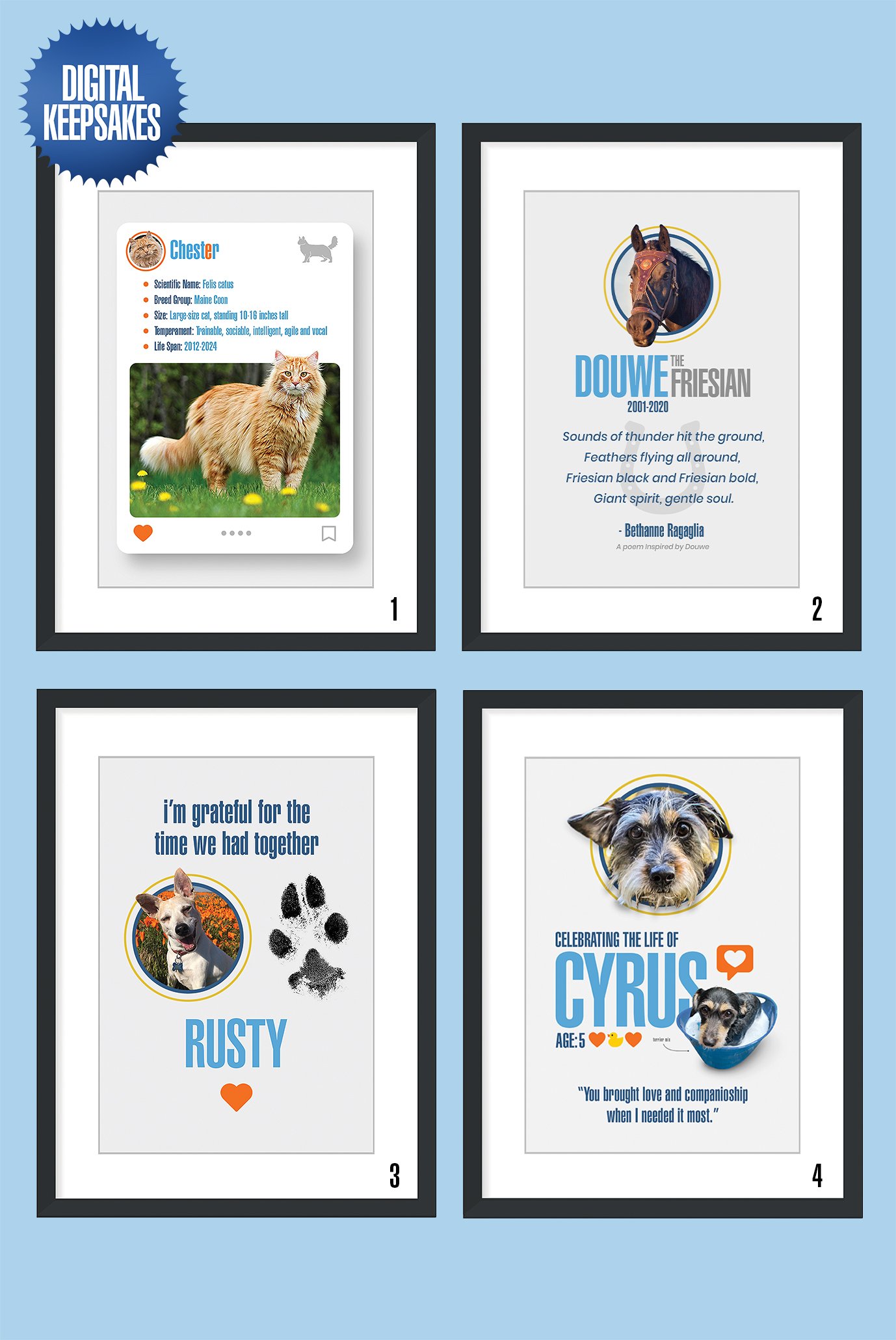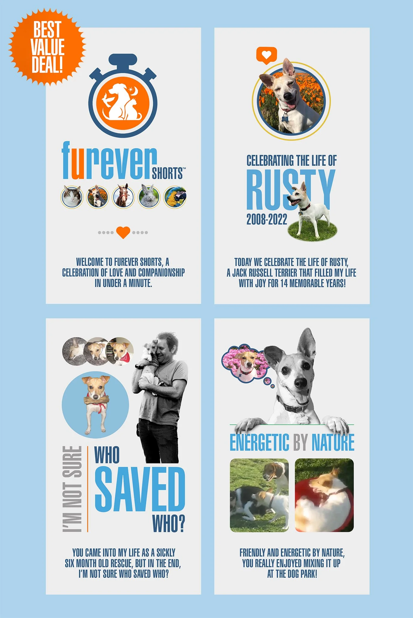 Furever Shorts Tribute Video $299.00 Add To Cart Added! Furever Films Tribute Video $399.00 Add To Cart Added! Custom Pet Digital Keepsakes $19.99 Add To Cart Added! Custom Pet 2026 Digital Calendar $19.99 Add To Cart Added! Custom Digital Pet Wallpaper Package $19.99 Add To Cart Added!